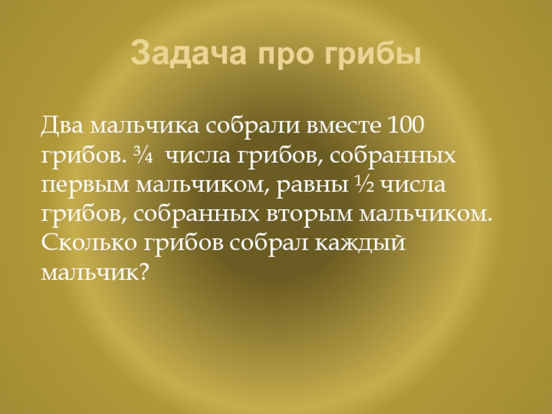 Два мальчика собрали вместе 100 грибов. ¾ числа грибов,