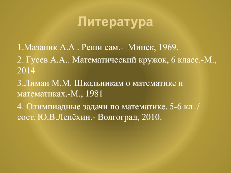 1.Мазаник А.А . Реши сам.- Минск, 1969.