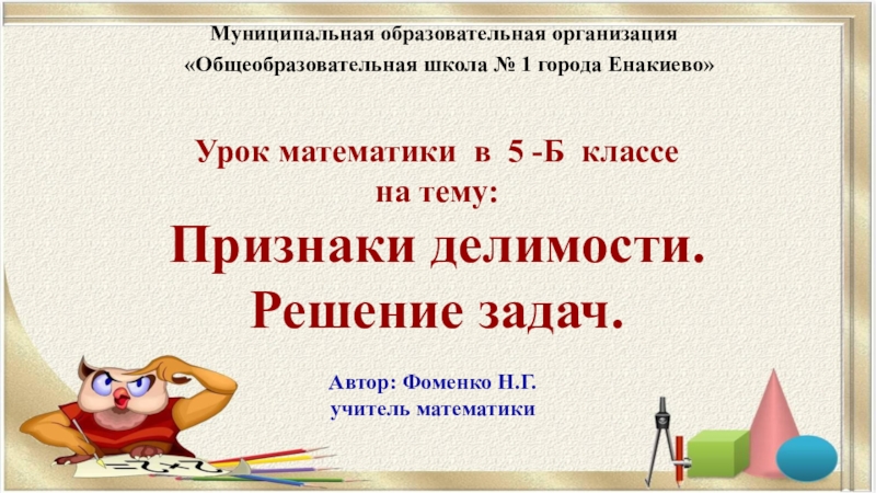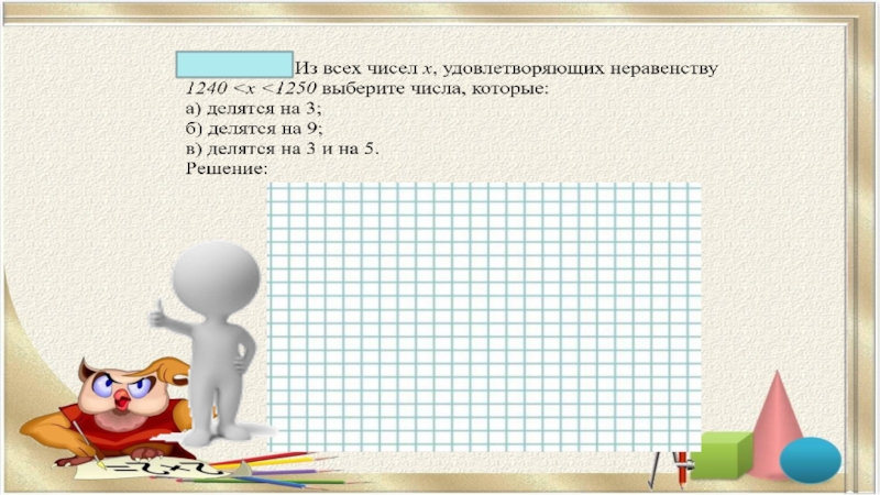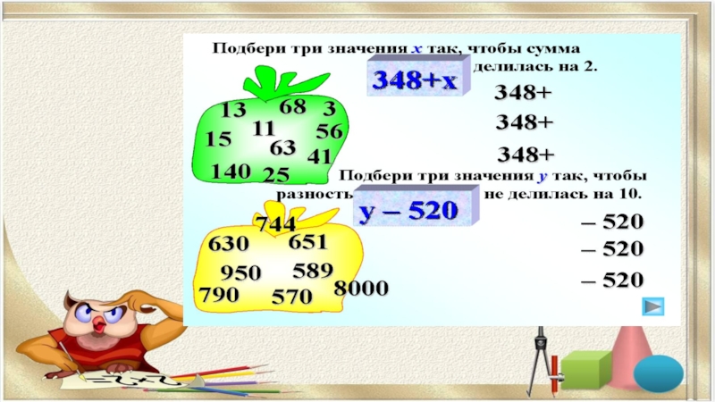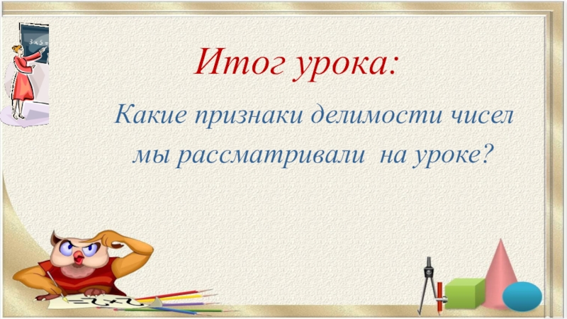 обобщить и систематизировать знания, умения и навыки применять признаки делимости при решении задач