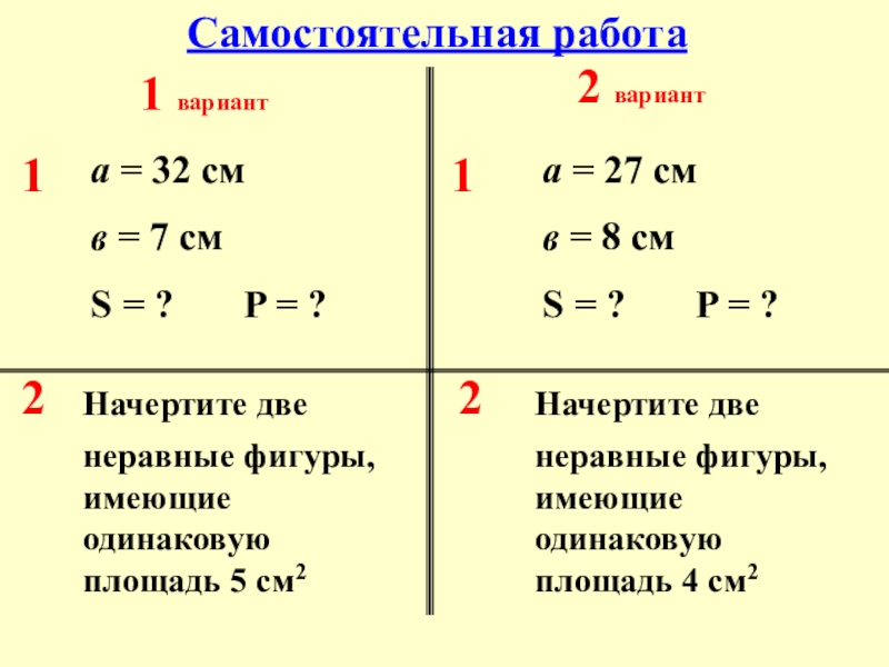 неравные фигуры, имеющие одинаковую площадь 4 см2