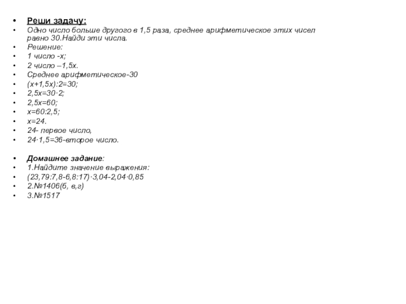 Одно число больше другого в 1,5 раза, среднее арифметическое этих