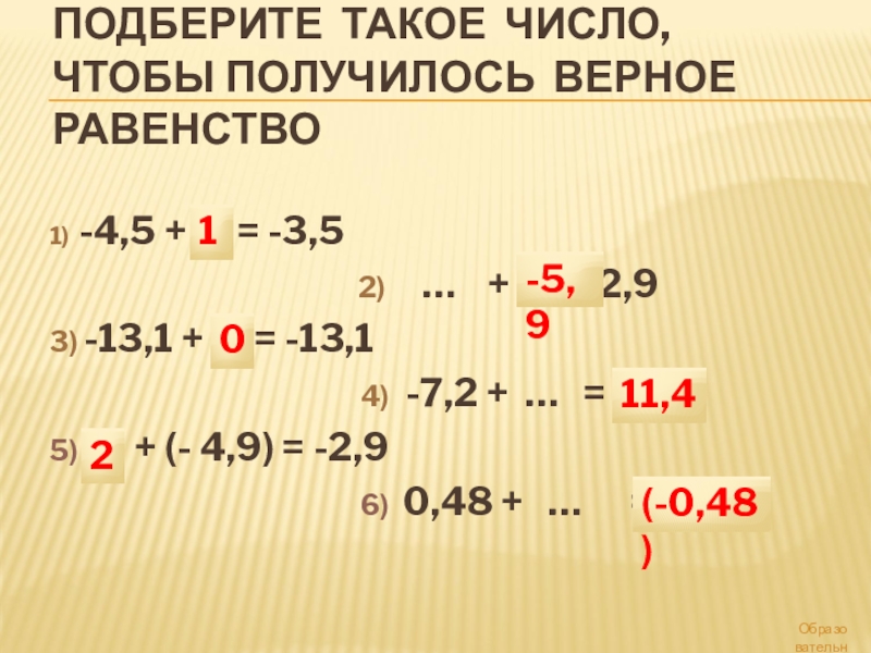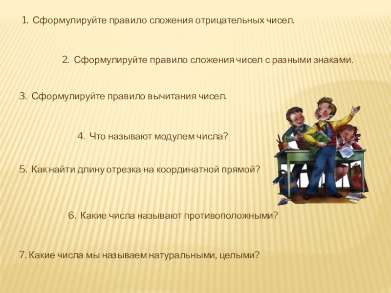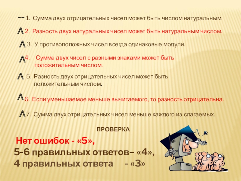 7. Сумма двух отрицательных чисел меньше каждого из слагаемых.