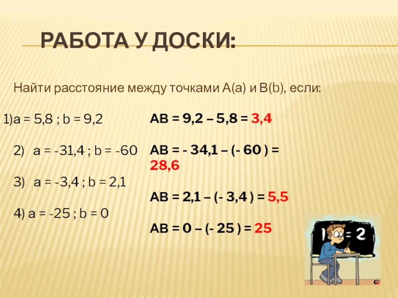 АВ = 2,1 – (- 3,4 ) = 5,5
