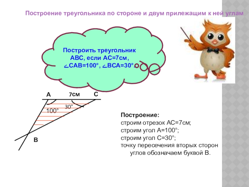 точку пересечения вторых сторон углов обозначаем буквой В.