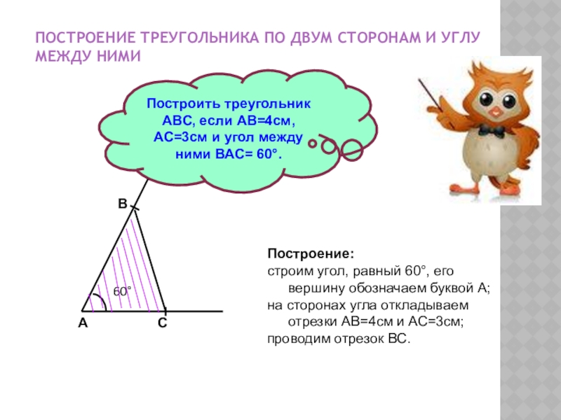 строим угол, равный 60°, его вершину обозначаем буквой А;