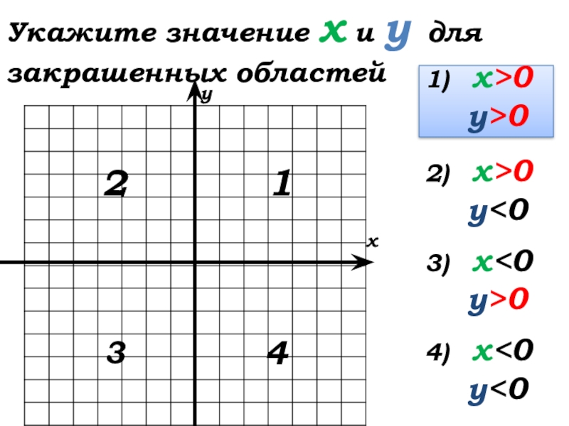 Укажите область системы координат для данных значение х и у