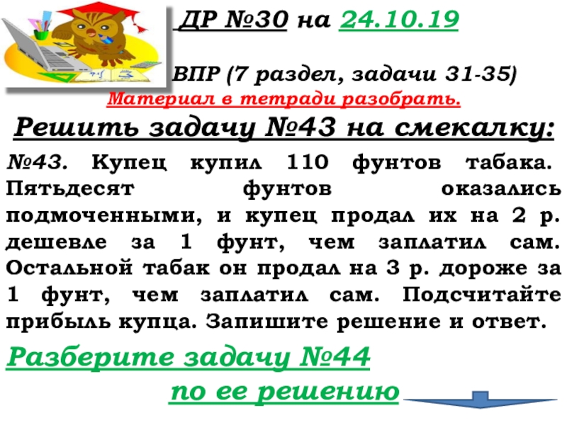 Слайд 4Разберите задачу №44