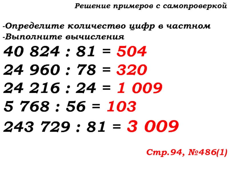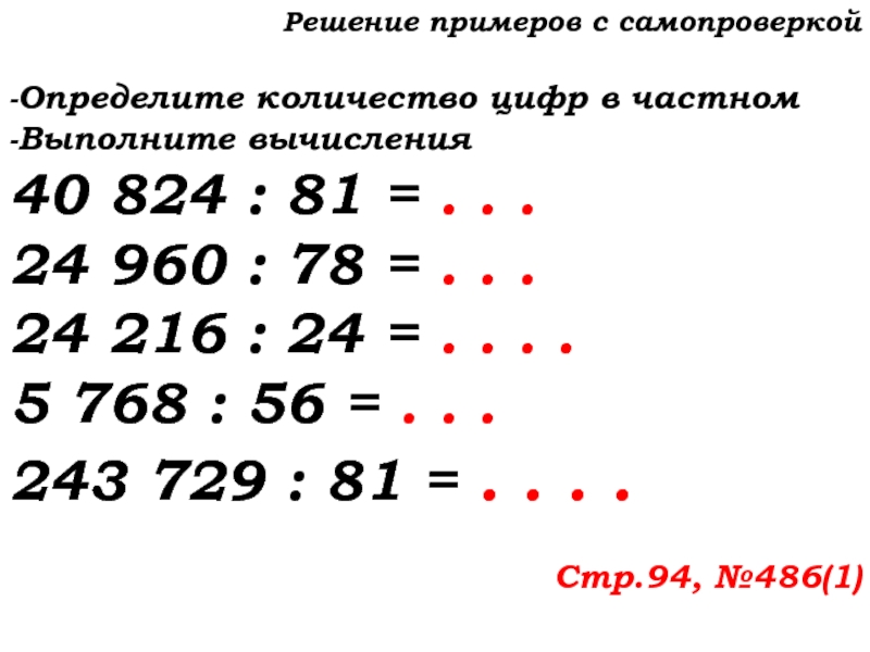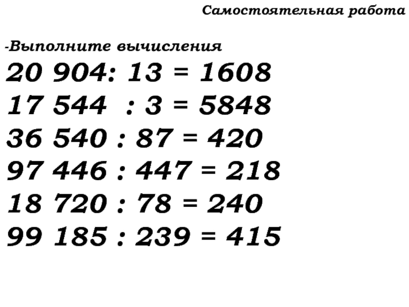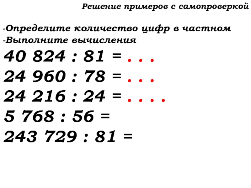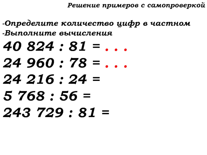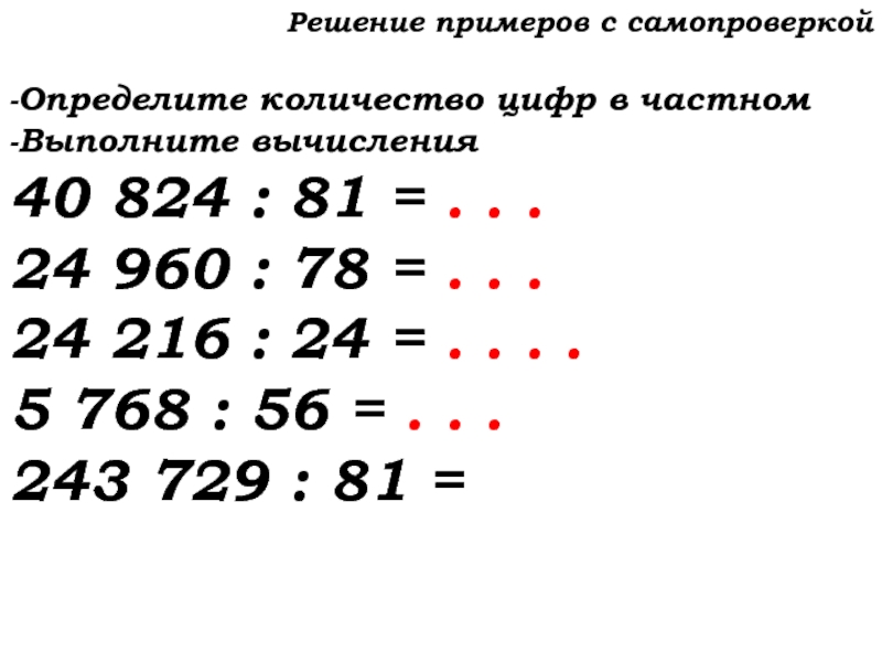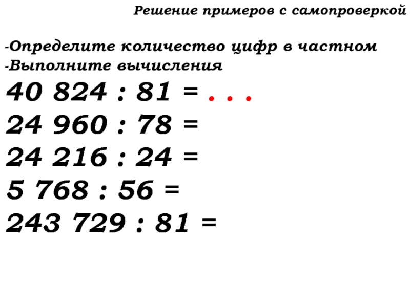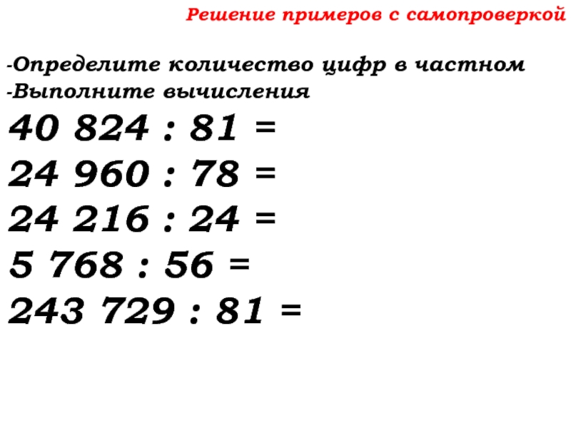Слайд 13Решение примеров с самопроверкой