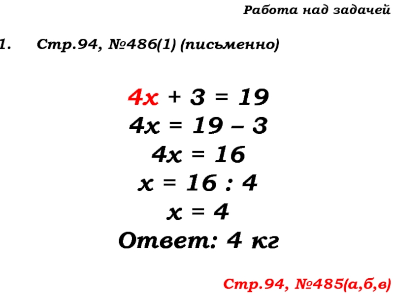 Слайд 19Работа над задачей