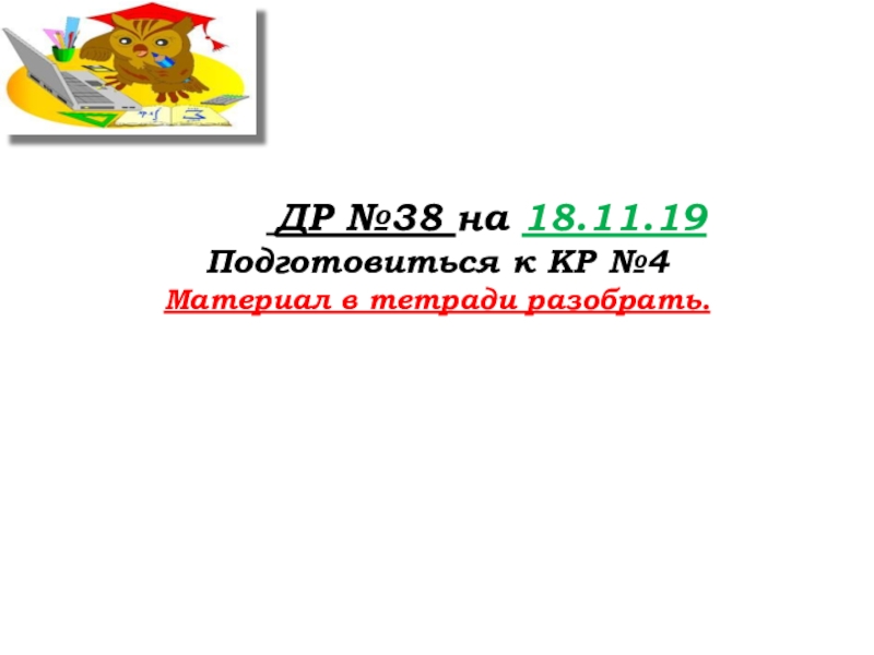 ДР №38 на 18.11.19Подготовиться к КР №4Материал в тетради разобрать.