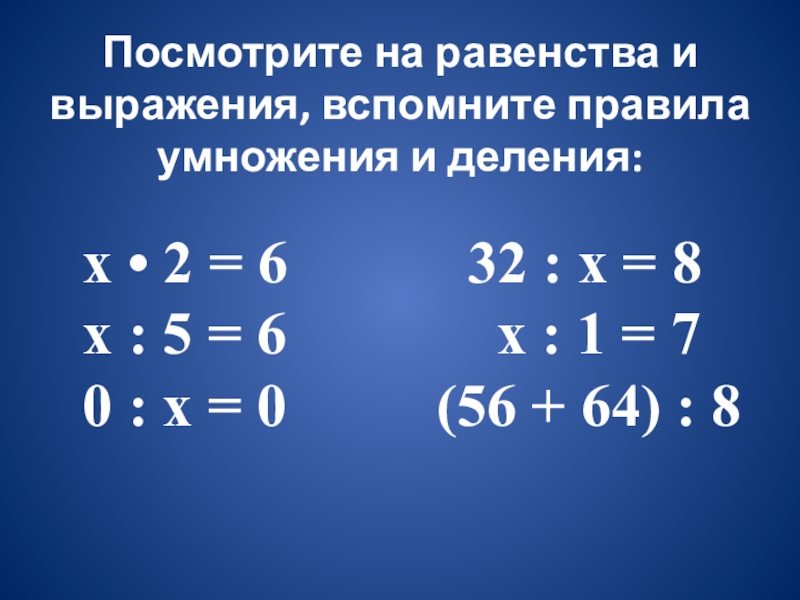 Посмотрите на равенства и выражения, вспомните правила умножения и деления: