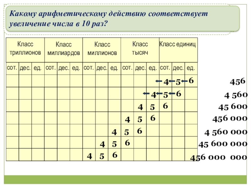 Какому арифметическому действию соответствует увеличение числа в 10 раз?