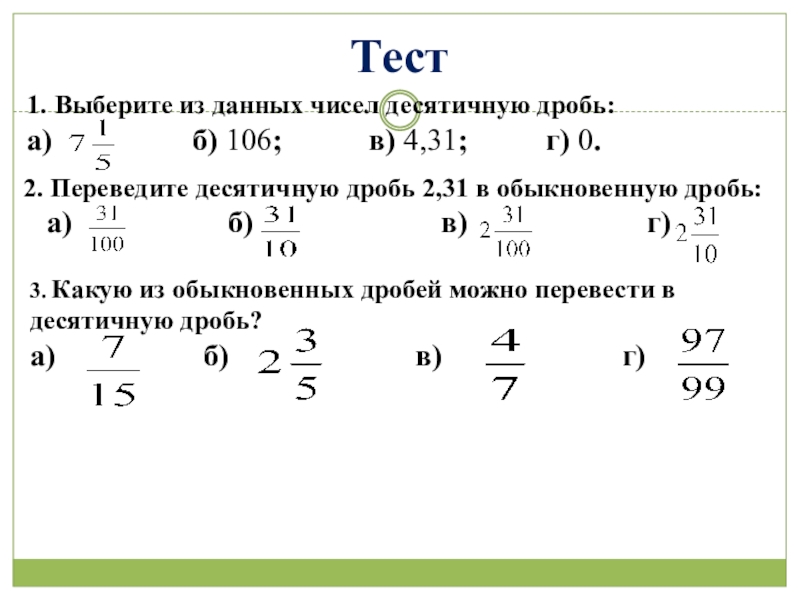 3. Какую из обыкновенных дробей можно перевести в десятичную дробь?