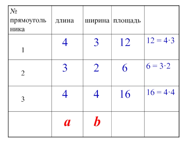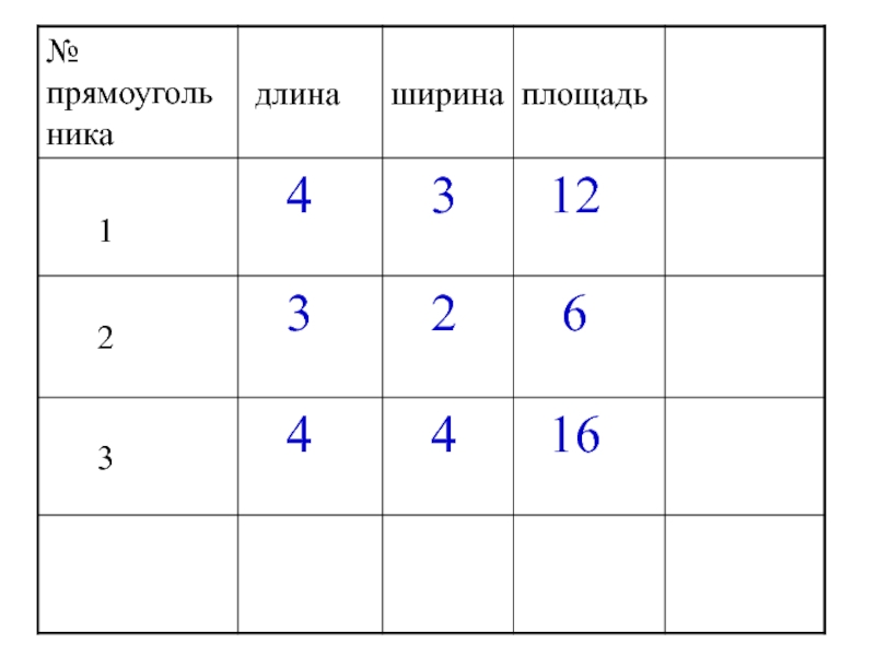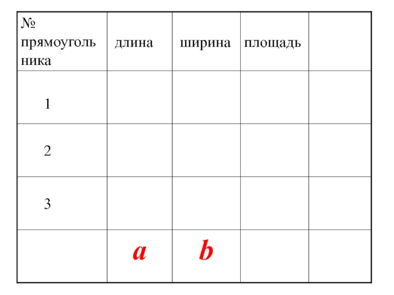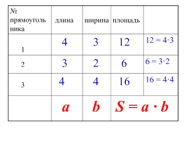 Слайд 13Найдите длины сторон представленных прямоугольников и их площади. Запишите полученные результаты