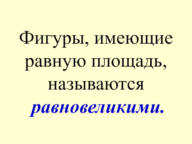 Слайд 10Фигуры, имеющие равную площадь, называются равновеликими.