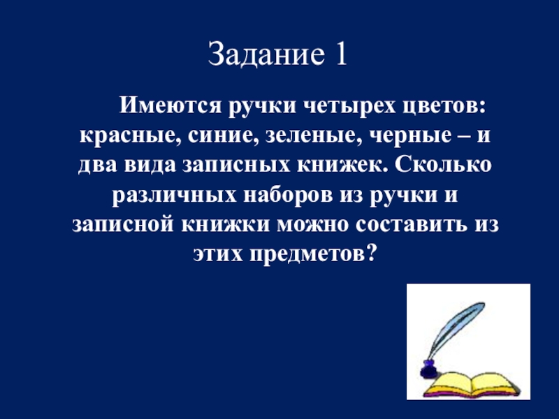 два вида записных книжек. Сколько различных наборов из ручки и записной книжки можно составить из этих предметов?