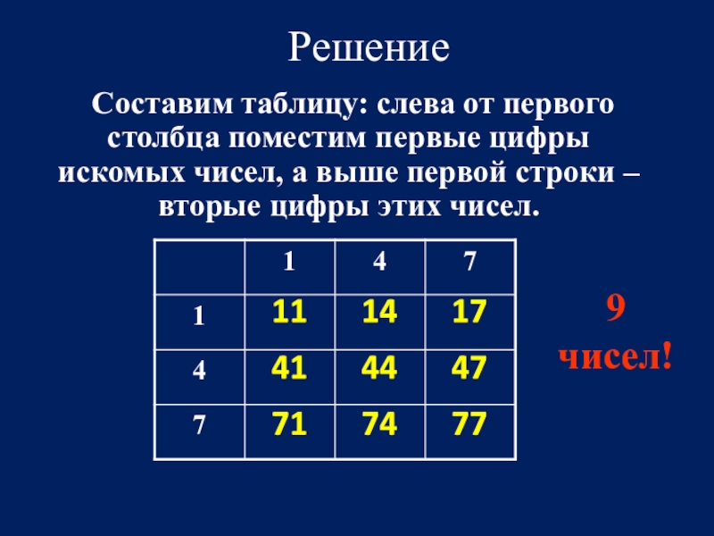 искомых чисел, а выше первой строки – вторые цифры этих чисел.