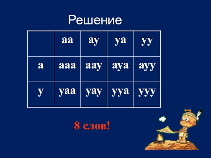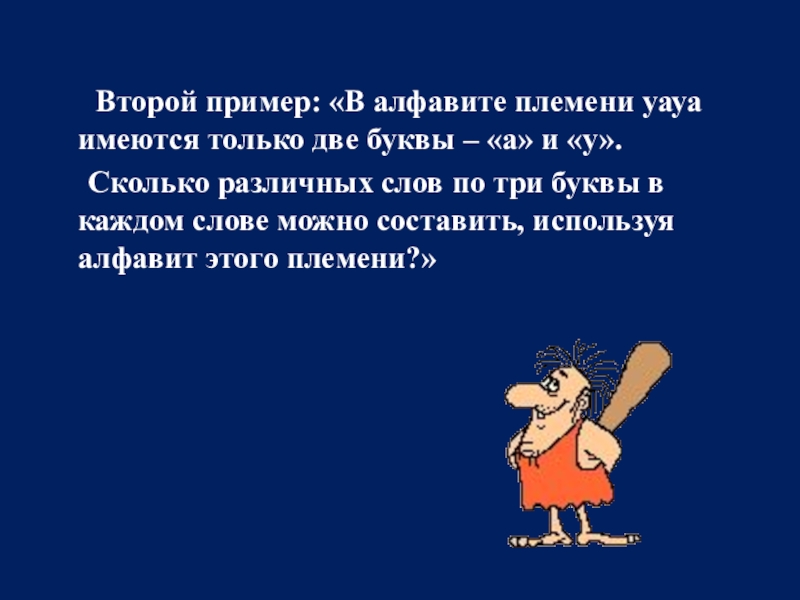 Слайд 3 Второй пример: «В алфавите племени уауа имеются только две буквы