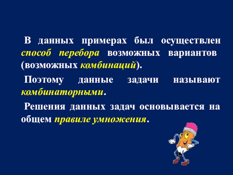 Слайд 7 В данных примерах был осуществлен способ перебора возможных вариантов (возможных комбинаций).