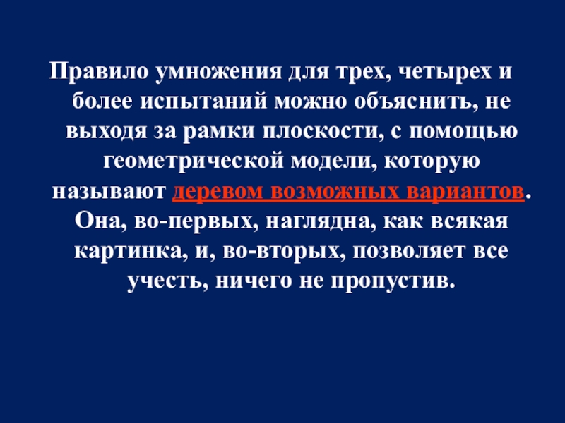 Слайд 9Правило умножения для трех, четырех и более испытаний можно объяснить, не