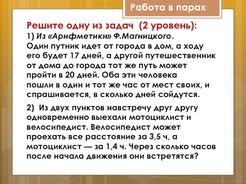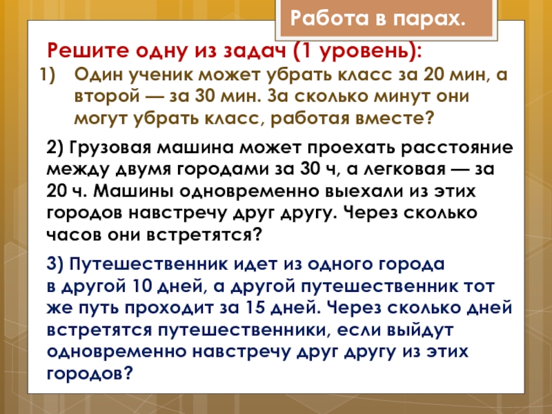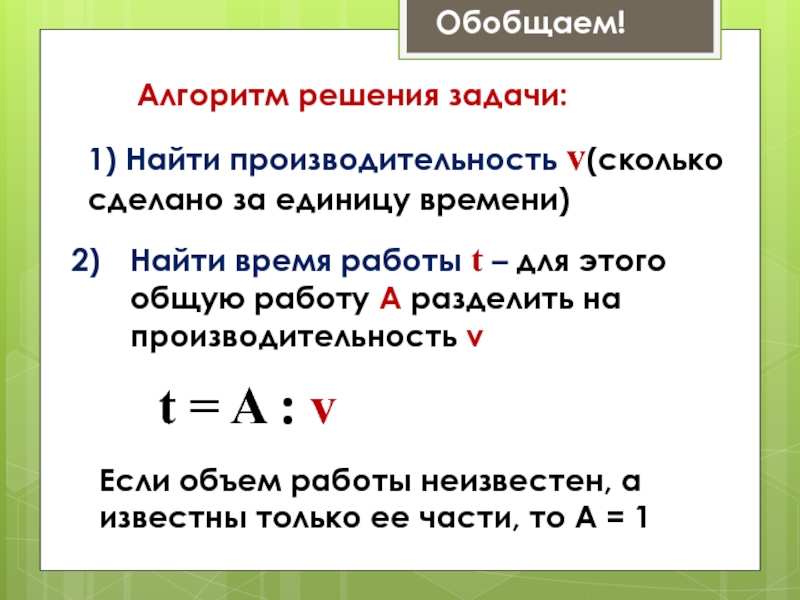 Если объем работы неизвестен, а известны только ее части, то A = 1