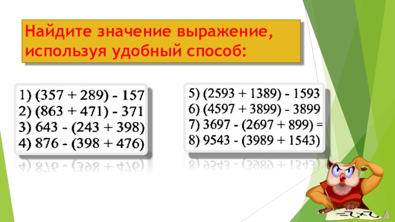 Слайд 3Найдите значение выражение, используя удобный способ: