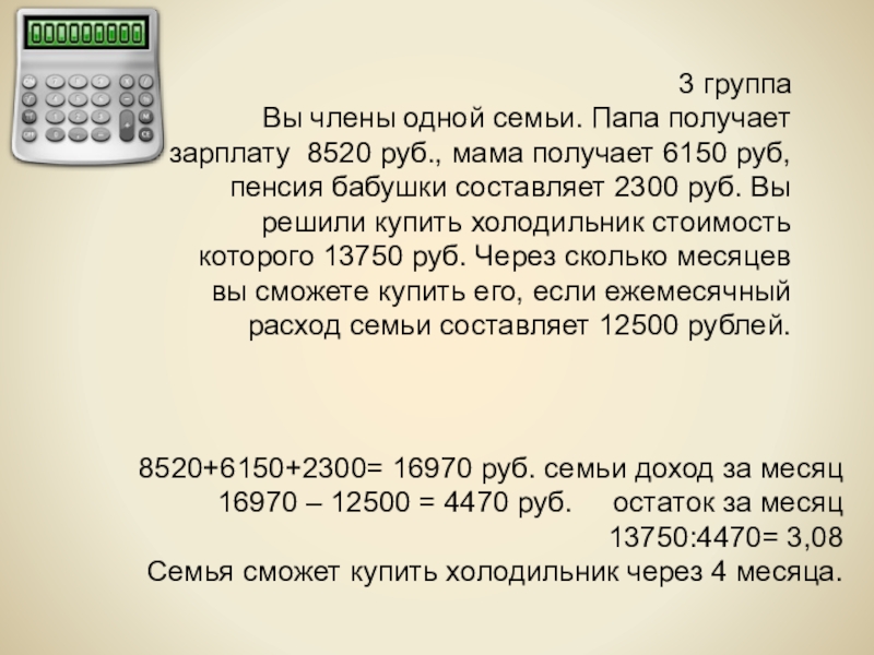 8520+6150+2300= 16970 руб. семьи доход за месяц