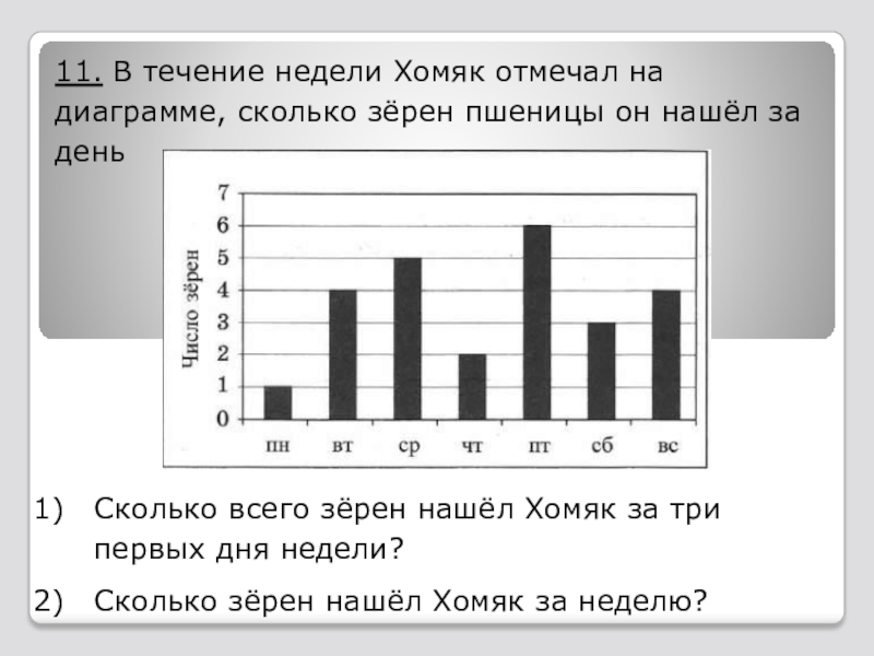 Сколько всего зёрен нашёл Хомяк за три первых дня недели?