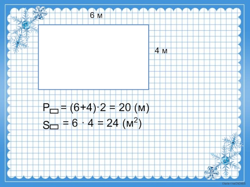 6 м4 м= (6+4)·2 = 20 (м) = 6 · 4 = 24 (м2)