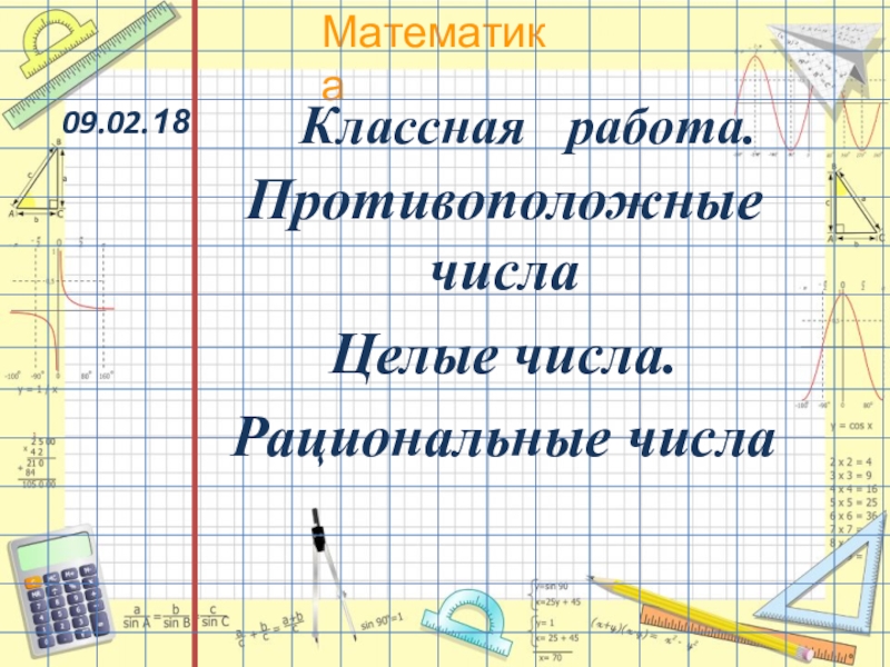 Классная  работа.Противоположные числаЦелые числа.Рациональные числа09.02.18