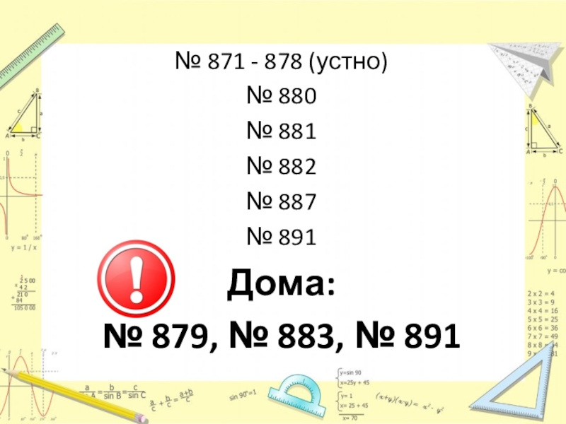 № 871 - 878 (устно)№ 880№ 881№ 882№ 887№ 891Дома: № 879, № 883, № 891