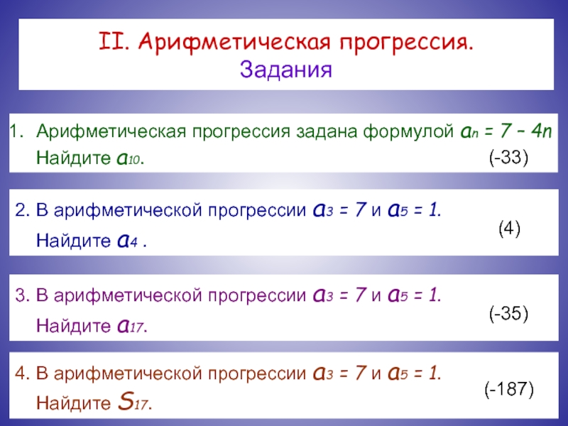 2. В арифметической прогрессии a3 = 7 и a5 = 1.