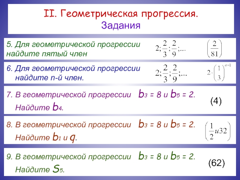 7. В геометрической прогрессии b3 = 8 и b5 = 2.