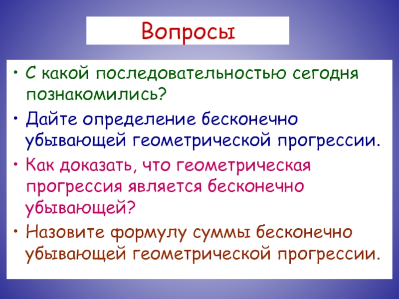 Геометрической прогрессией называется последовательность отличных от нуля чисел, каждый член которой, начиная со второго, равен предыдущему члену, умноженному на одно и то же число