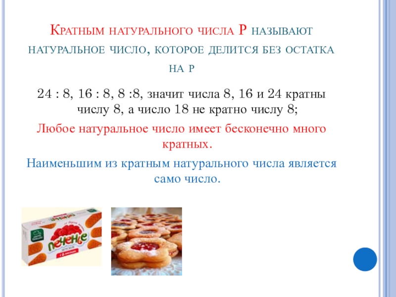 24 : 8, 16 : 8, 8 :8, значит числа 8, 16 и 24 кратны числу 8, а число 18 не кратно числу 8;