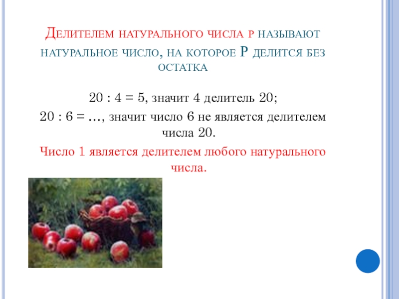 20 : 4 = 5, значит 4 делитель 20;