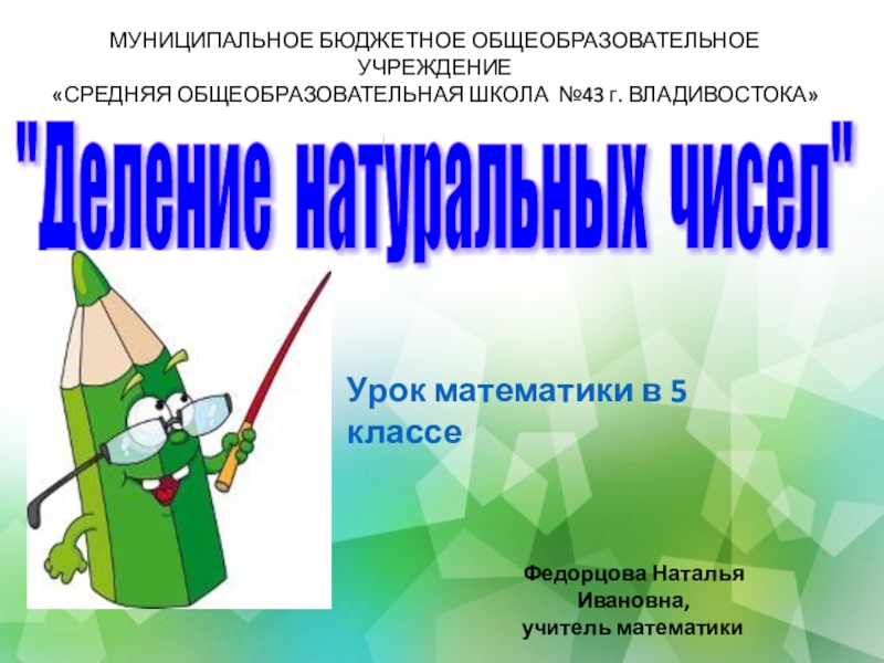 «СРЕДНЯЯ ОБЩЕОБРАЗОВАТЕЛЬНАЯ ШКОЛА №43 г. ВЛАДИВОСТОКА»