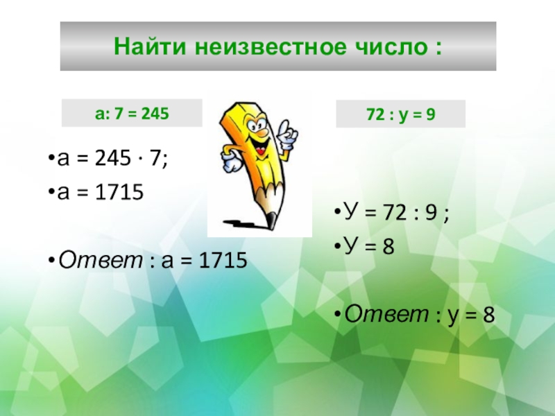 Применяя правило нахождения неизвестного множителя, находим: х = 42 : 6, то есть х = 7