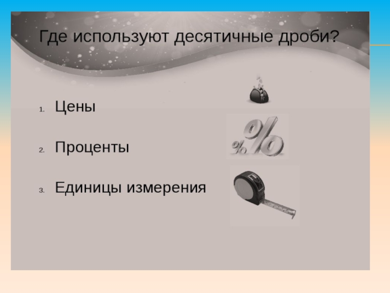 Десятичные дроби нужно изучать, потому, что они пригодятся в жизни;