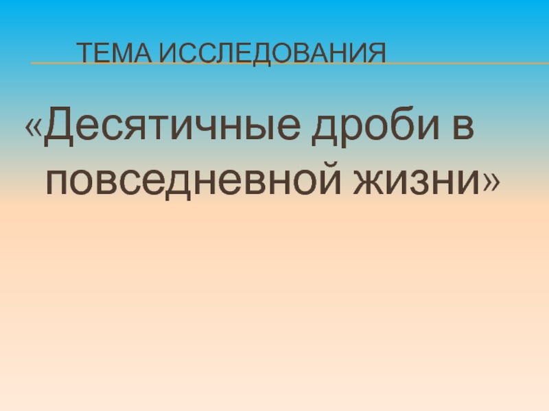 Тема исследования«Десятичные дроби в повседневной жизни»