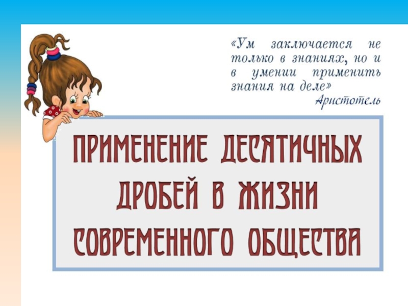 Слайд 1«Десятичные дроби в повседневной жизни»