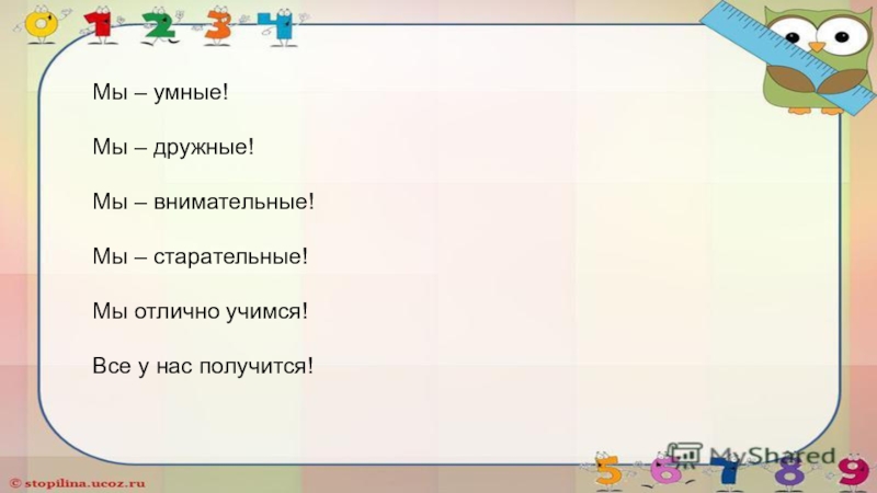 Это сайт презентаций, где можно хранить и обмениваться своими презентациями, докладами, проектами, шаблонами в формате PowerPoint с другими пользователями. Мы помогаем школьникам, студентам, учителям, преподавателям хранить и обмениваться учебными материалами.