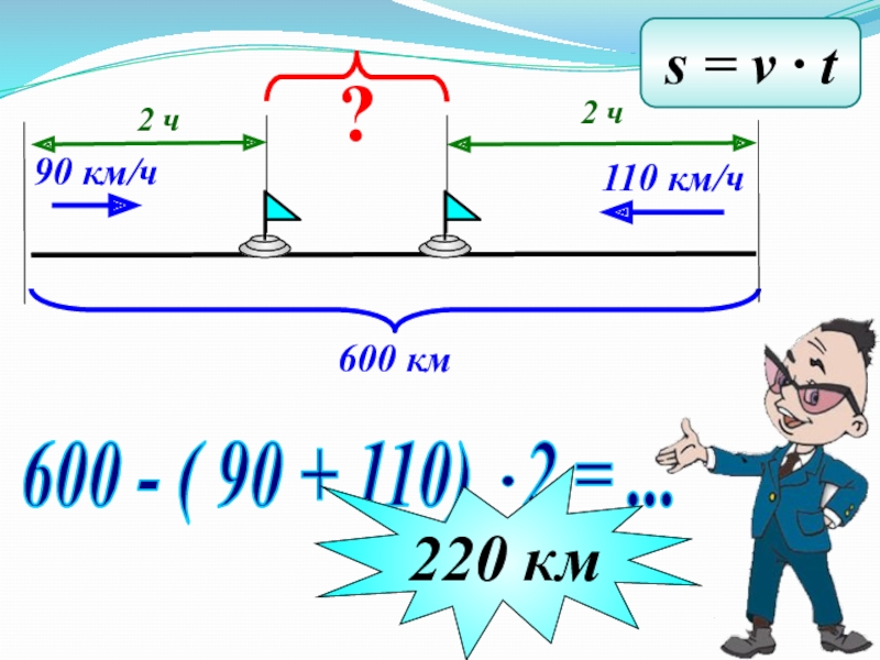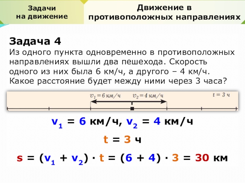 s = (v1 + v2) · t = (6 + 4) · 3 = 30 км
