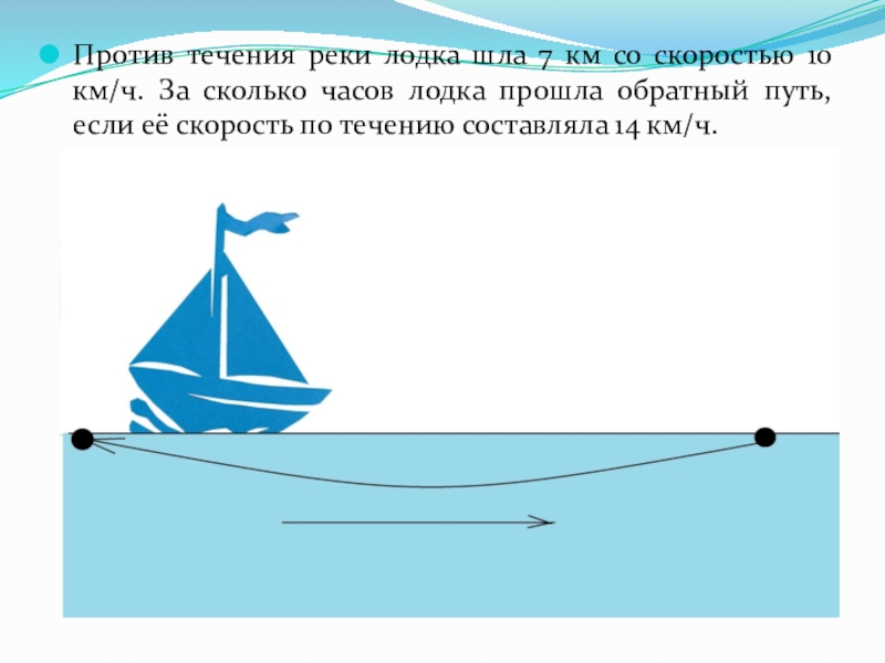 Катер плывет из города A в Б с собственной скоростью 40 км/ч, а теплоход из Б в А со скоростью 10 км/ч.