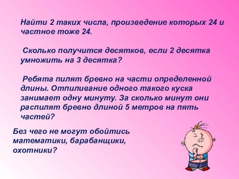 Без чего не могут обойтись математики, барабанщики, охотники?