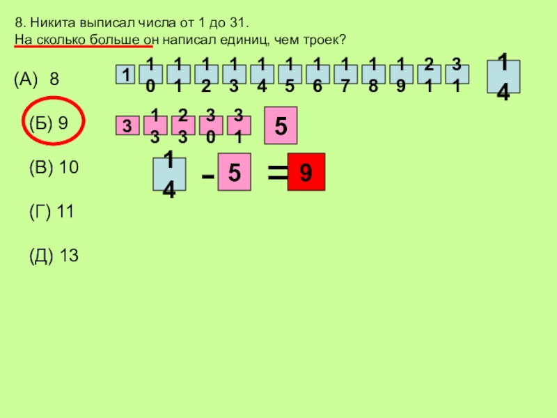 (A) 7 (Б) 8 (В) 10 (Г) 11 (Д) 23