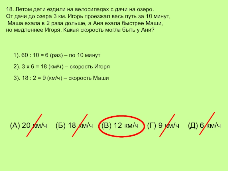 3). 18 : 2 = 9 (км/ч) – скорость Маши