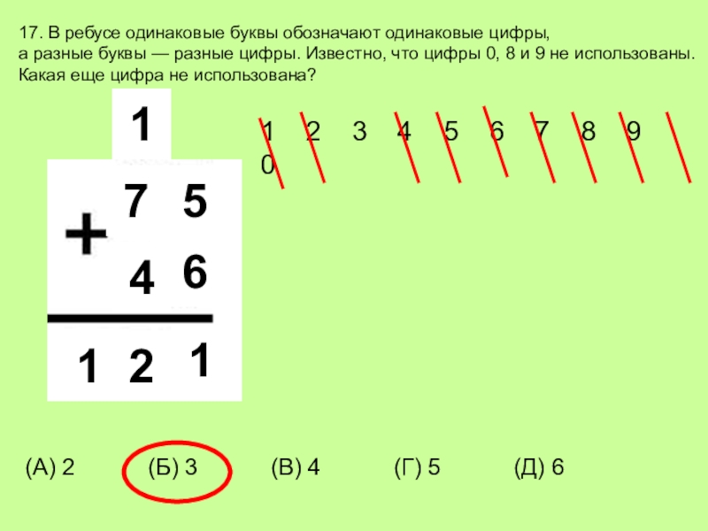 (A) 6 (Б) 7 (В) 8 (Г) 9 (Д) 10