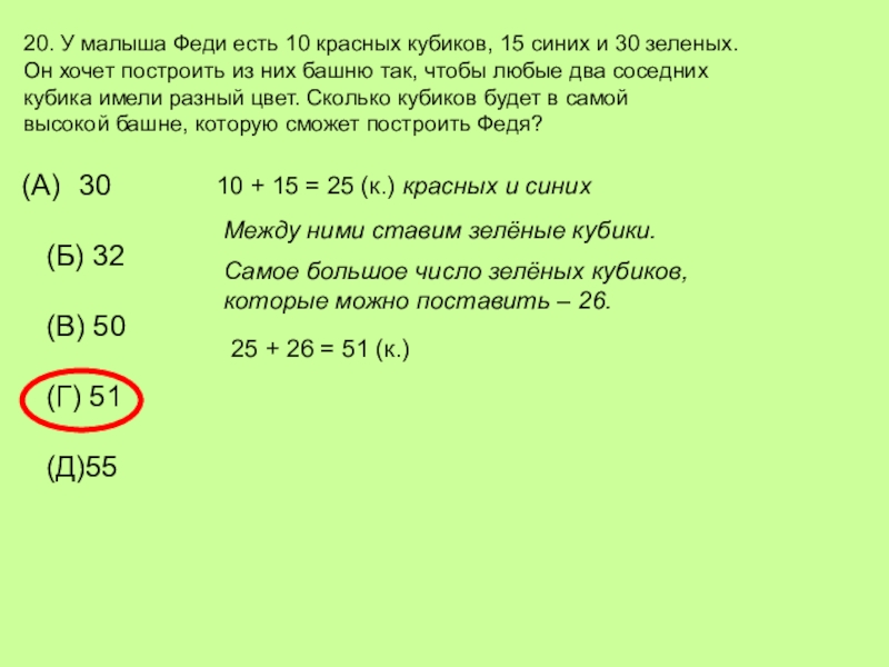 (A) 12 (Б) 15 (В) 21 (Г) 30 (Д) 51