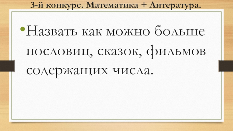 3-й конкурс. Математика + Литература.Назвать как можно больше пословиц, сказок, фильмов содержащих числа.